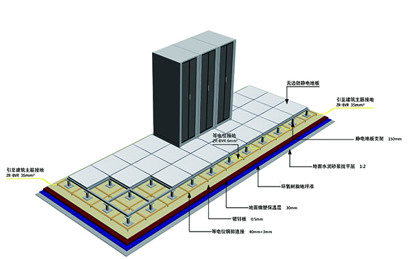 機(jī)房作為數(shù)據(jù)的處理和樞紐中心,成為信息系統(tǒng)中重點(diǎn)保護(hù)對(duì)象,而機(jī)房設(shè)備多,電源線、通訊線、數(shù)據(jù)線互相交叉,又極易遭受感應(yīng)雷擊,所以機(jī)房防雷問(wèn)題是系統(tǒng)集成中必須重點(diǎn)考慮的問(wèn)題,為確保各智能化系統(tǒng)穩(wěn)定可靠運(yùn)行及保障機(jī)房有良好的工作環(huán)境,設(shè)計(jì)須考慮做到技術(shù)先鋒、經(jīng)濟(jì)合理、安全適用。除滿足《機(jī)房防雷設(shè)計(jì)規(guī)范》(GB50174-93)與《建筑物防雷設(shè)計(jì)規(guī)范》(GB50057-94),《建筑物電子信息系統(tǒng)防雷技術(shù)規(guī)范》(GB50343-2004)要求的同時(shí),絕緣體的靜電電位不應(yīng)大于1kv,機(jī)房?jī)?nèi)的導(dǎo)體必須與地面作可靠的聯(lián)接,不得有對(duì)地絕緣的孤立導(dǎo)體,接地電阻不應(yīng)大于4Ω,同時(shí)還應(yīng)符合現(xiàn)行國(guó)家有關(guān)標(biāo)準(zhǔn)規(guī)范的規(guī)定。