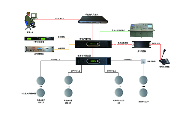 系統(tǒng)音源播放,通過后臺(tái)軟件處理實(shí)現(xiàn),滿足全數(shù)字結(jié)構(gòu)、智能化要求。